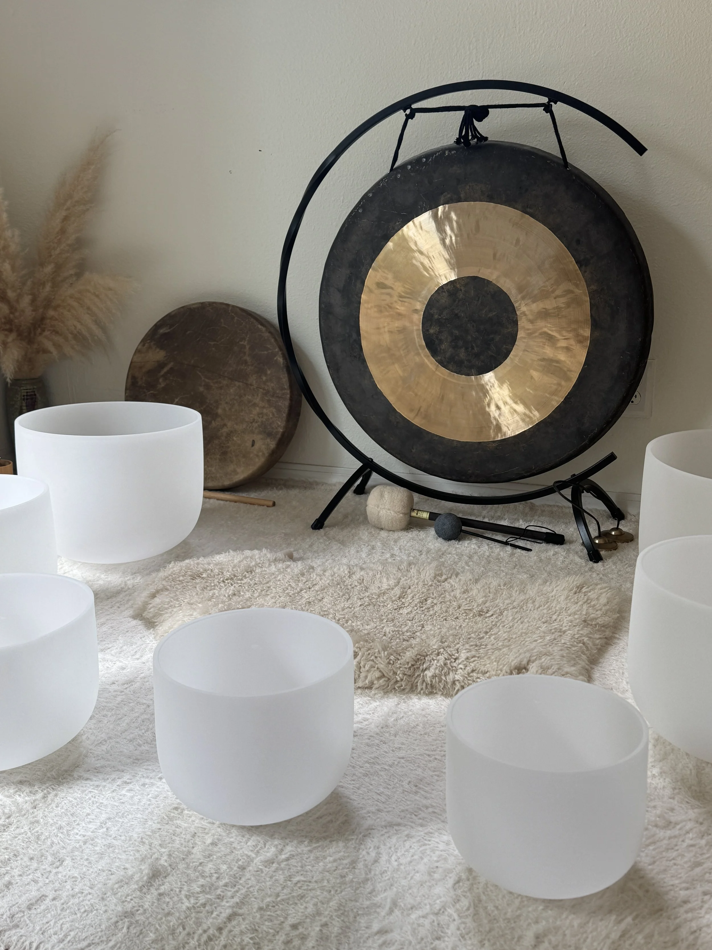 These sessions offer a quiet, personalized space to slow down and allow sound to support your nervous system and overall well-being. Crystal singing bowls and gong are used with care and intention to create a deeply immersive experience that helps the body release tension and return to balance.